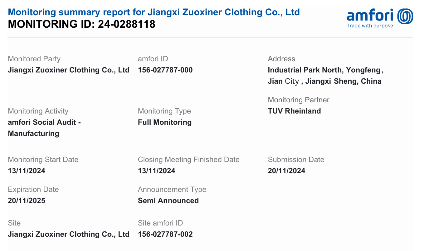 Zuoxiner is a professional manufacturer of high-quality men’s/women’s jackets, with a strong presence in global apparel supply chains. Its Fujian headquarters (2,000m²) is in Jinjiang; it also has a 2009-founded Jiangxi production base (5,000m², 90+ staff) in Ji’an, supporting stable production.