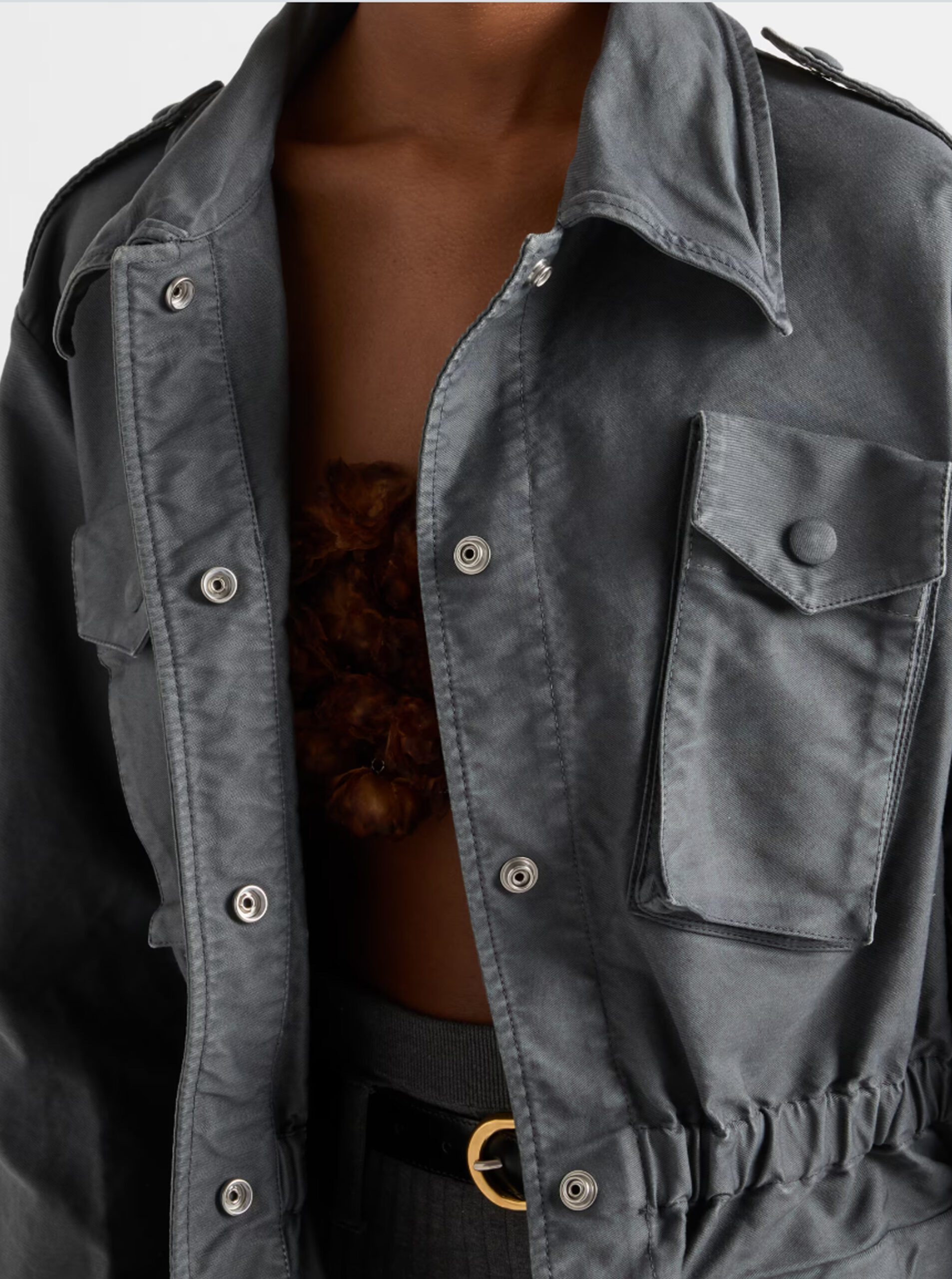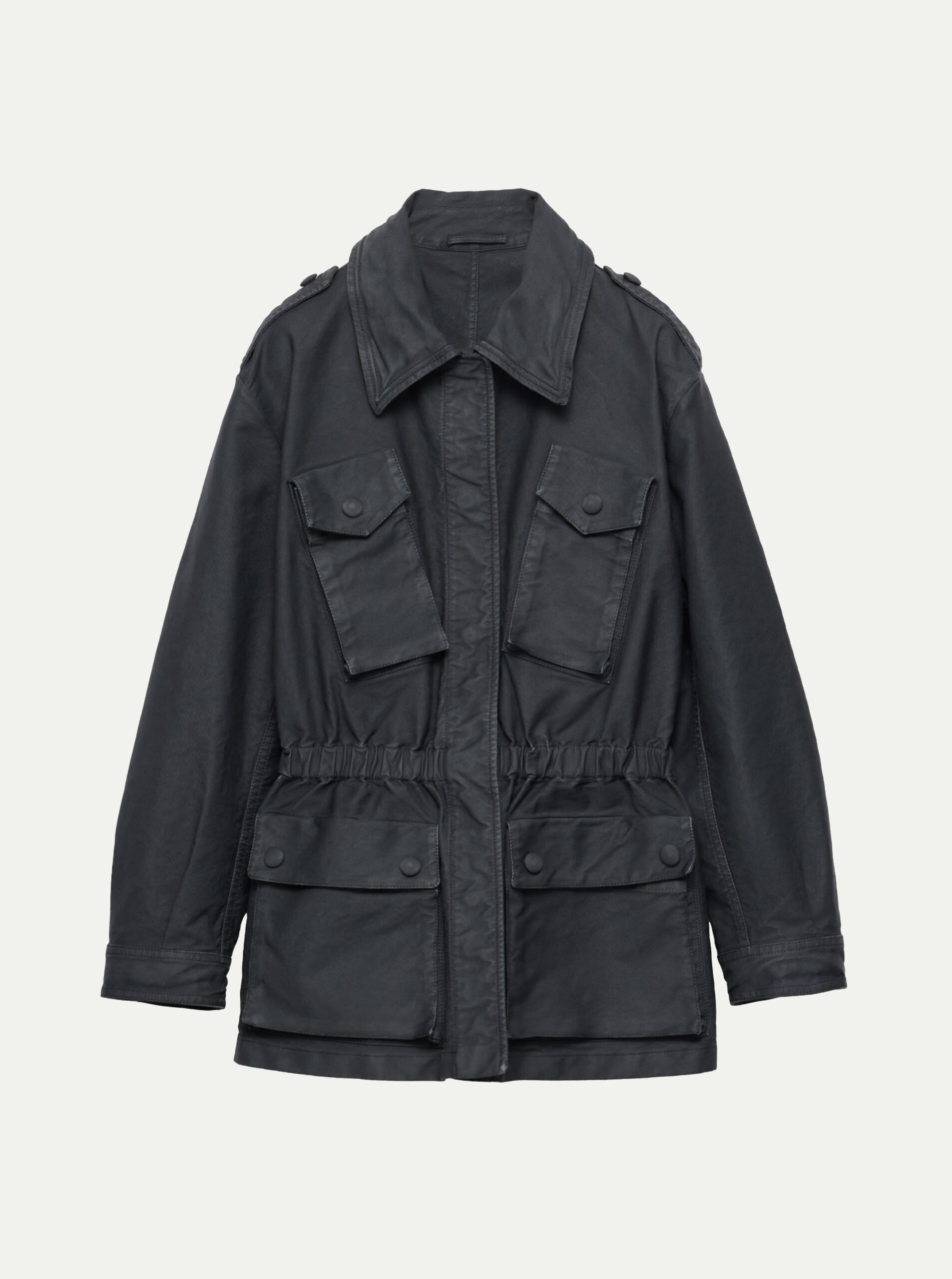 Channel a refined utilitarian aesthetic with this Cinched-Waist Utility Field Jacket.