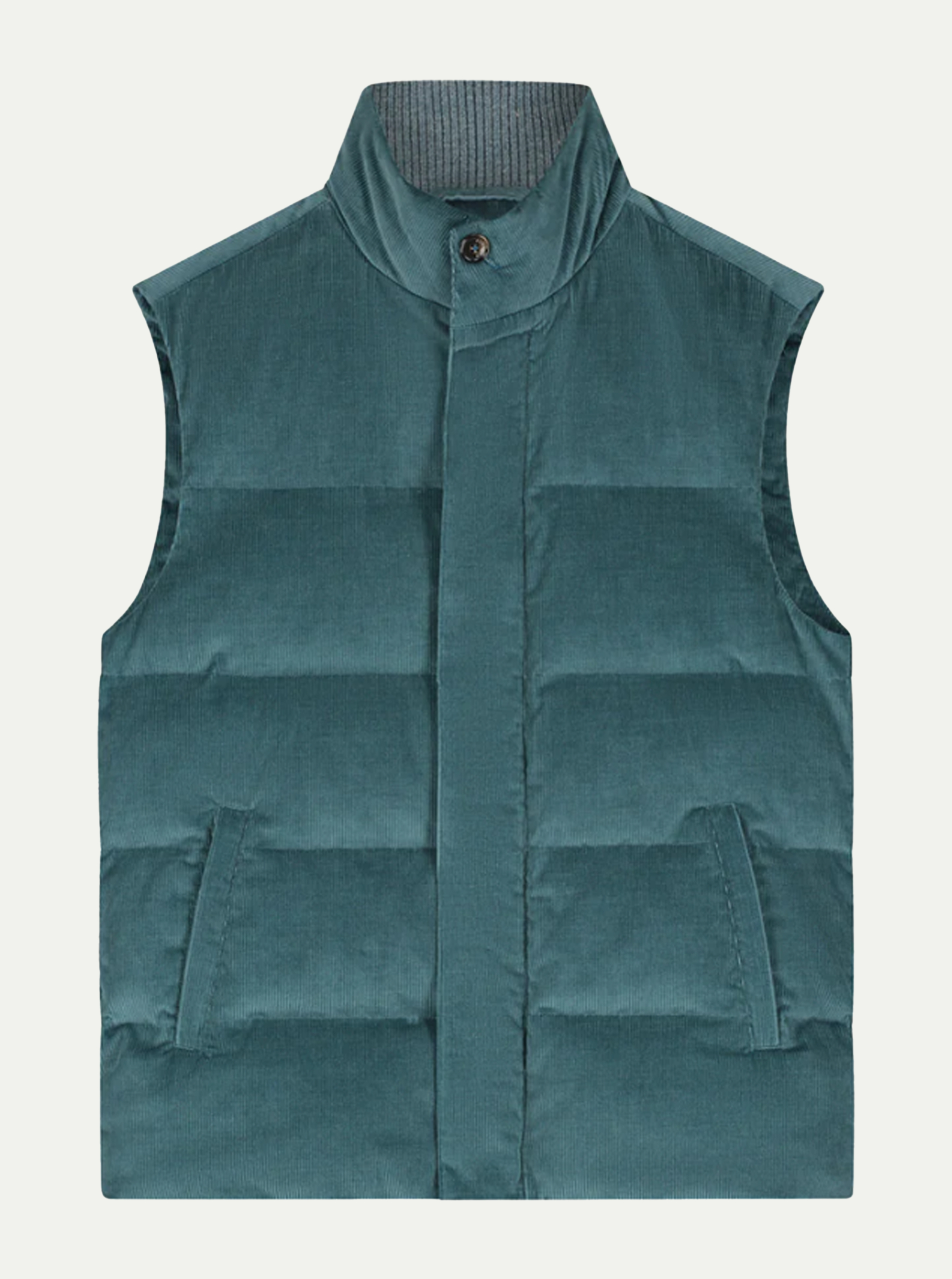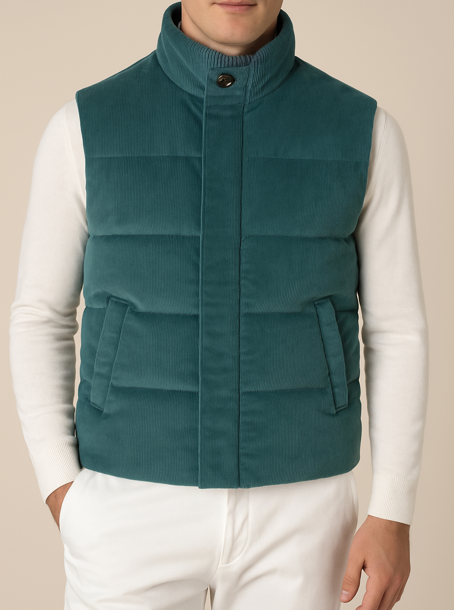 Elevate your layering style with this Men’s Teal Cropped Wool Puffer Vest. Crafted from a wool-rich blend, it merges the cozy warmth of a padded vest with the refined texture of wool, making it ideal for transitional weather. The cropped silhouette adds a modern touch, while the stand collar and functional details blend practicality with sleek design—perfect for adding a polished layer to casual or smart-casual outfits.