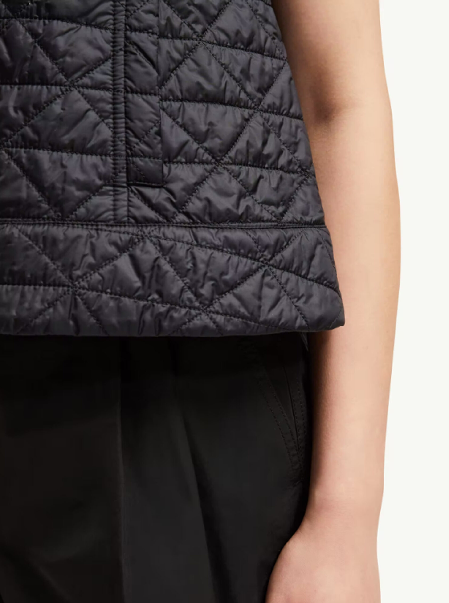 The structured diamond quilting adds depth and warmth without bulk, making it a polished and versatile layer for everyday wear.