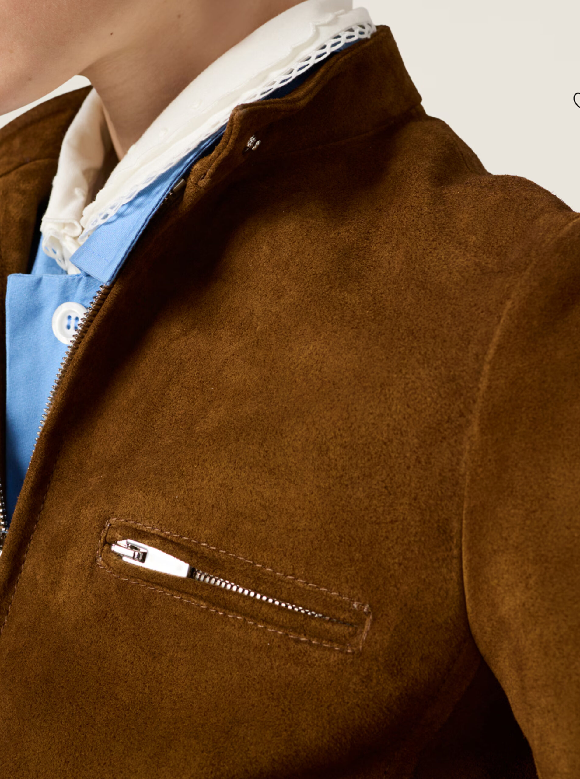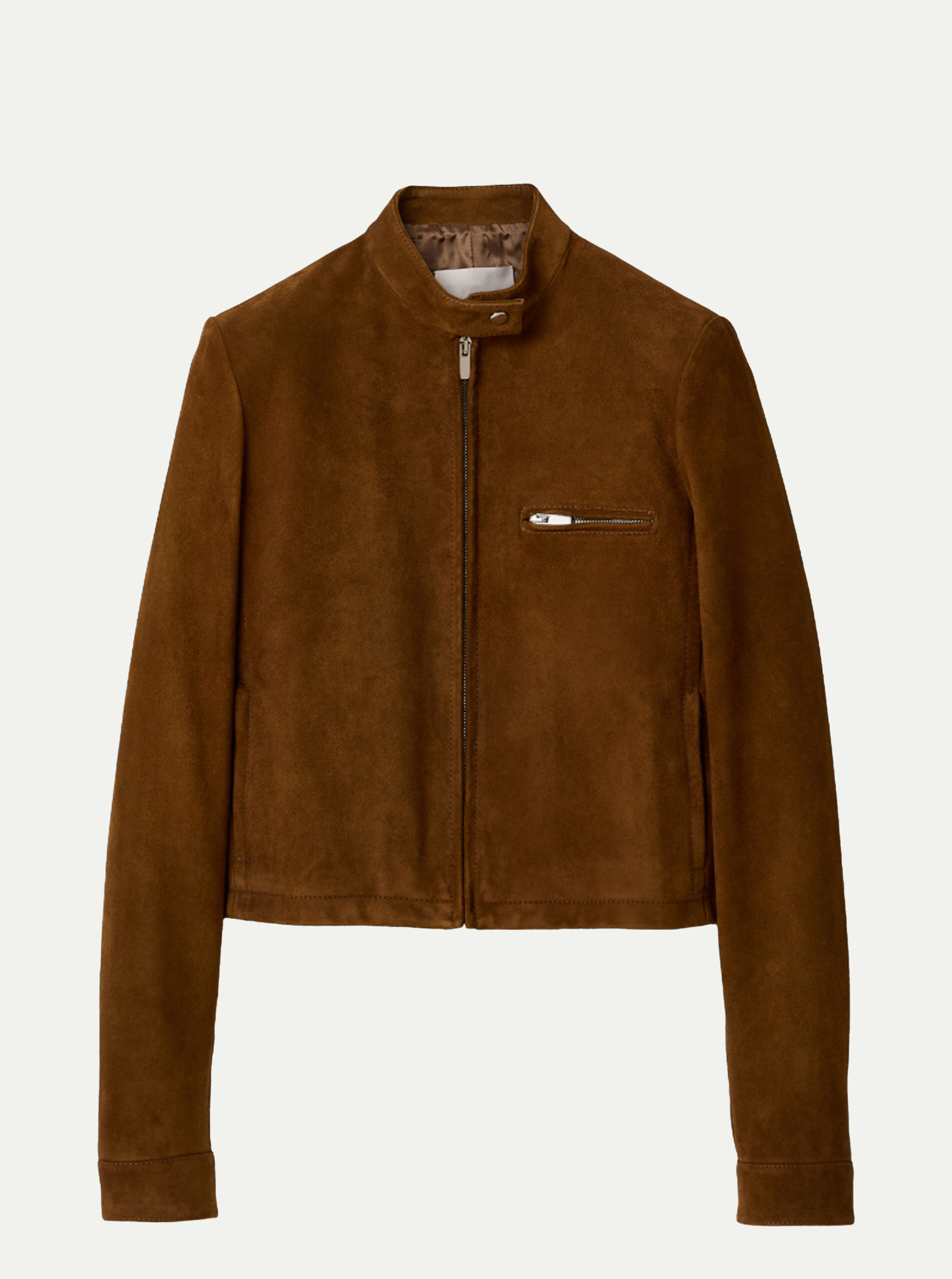 Elevate your wardrobe with this Faux Suede Stand-Collar Cropped Jacket, a refined take on minimalist moto styling.