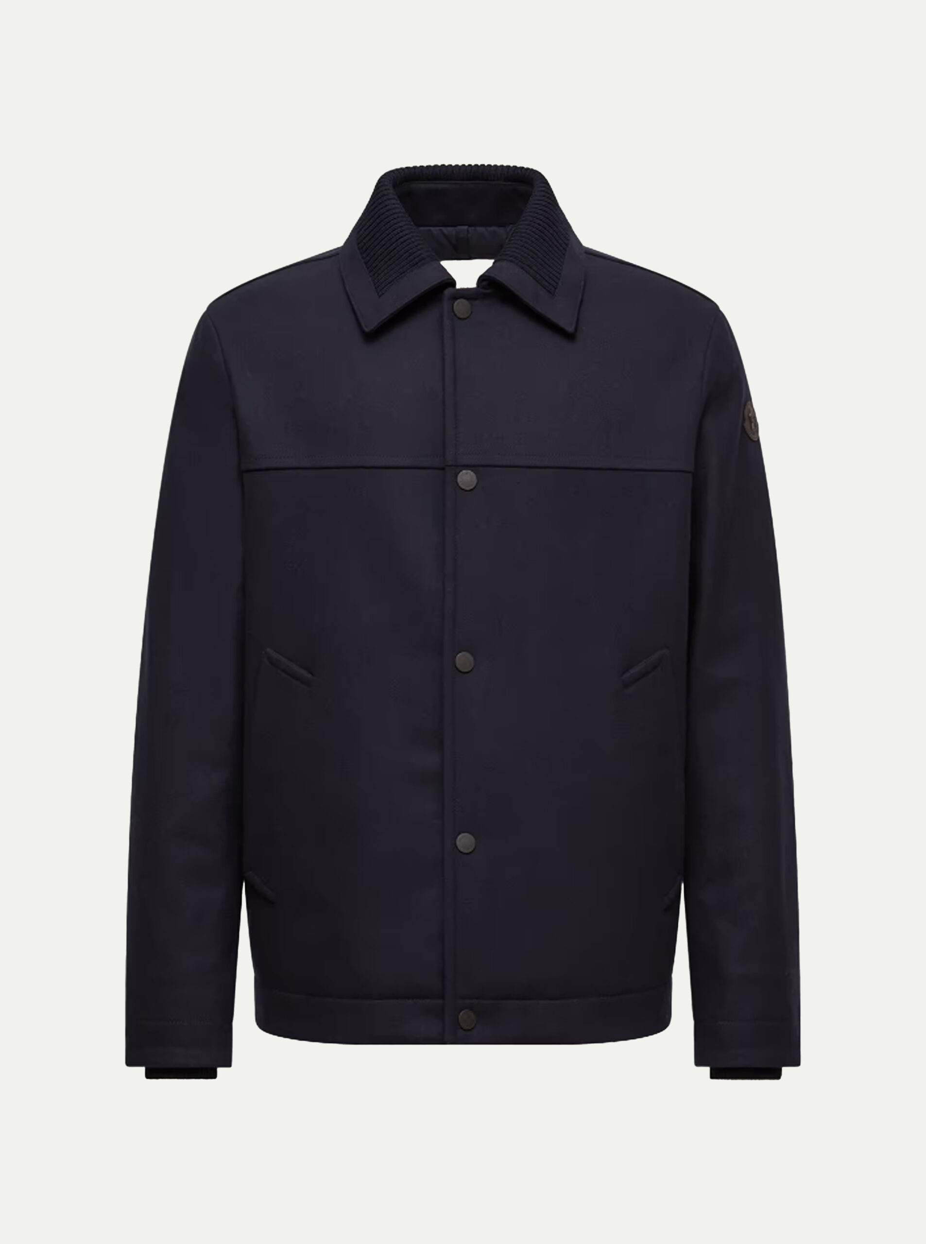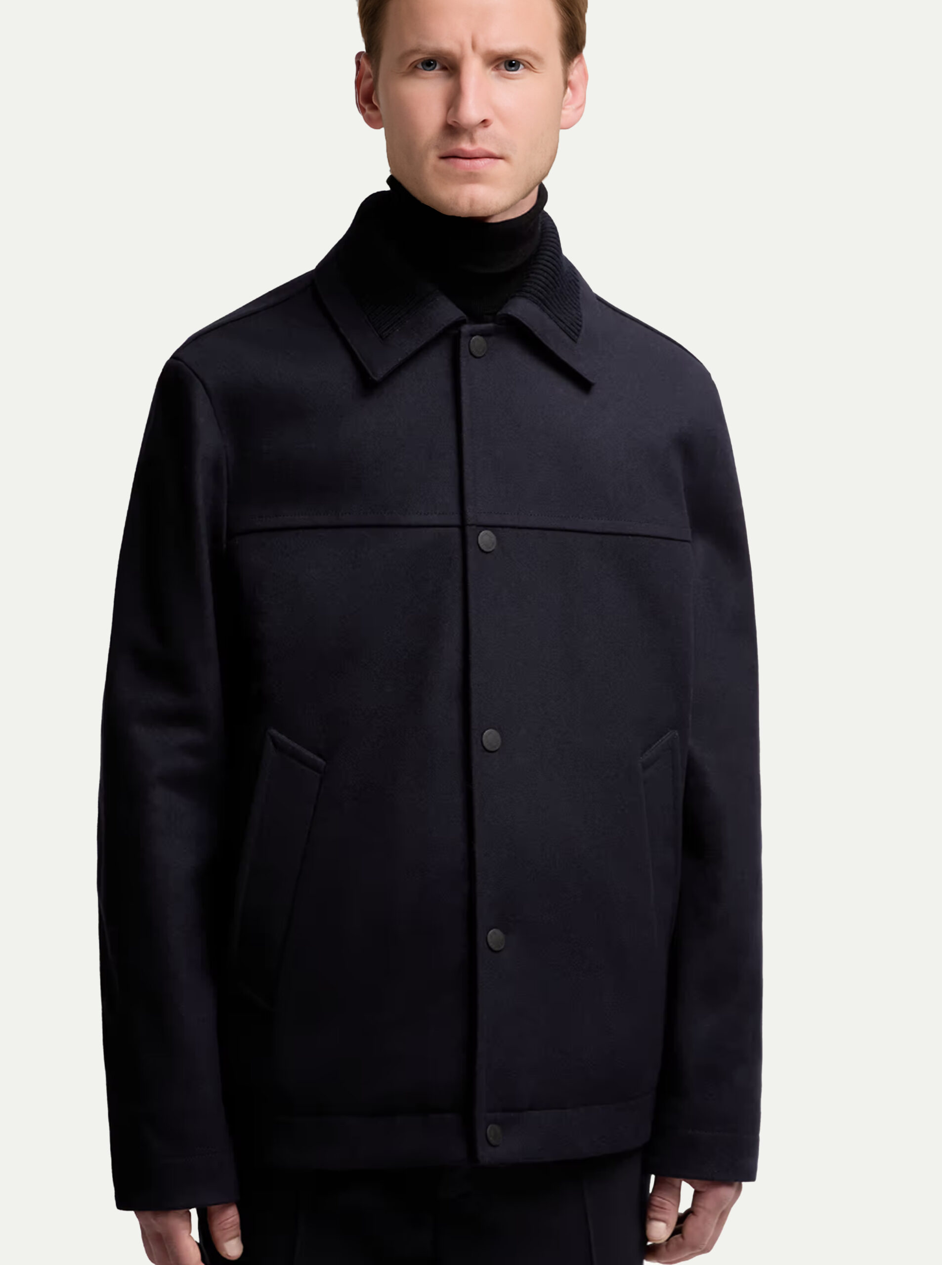- Button-Front Closure: The front button closure ensures a secure and clean finish, complementing the jacket’s structured silhouette.