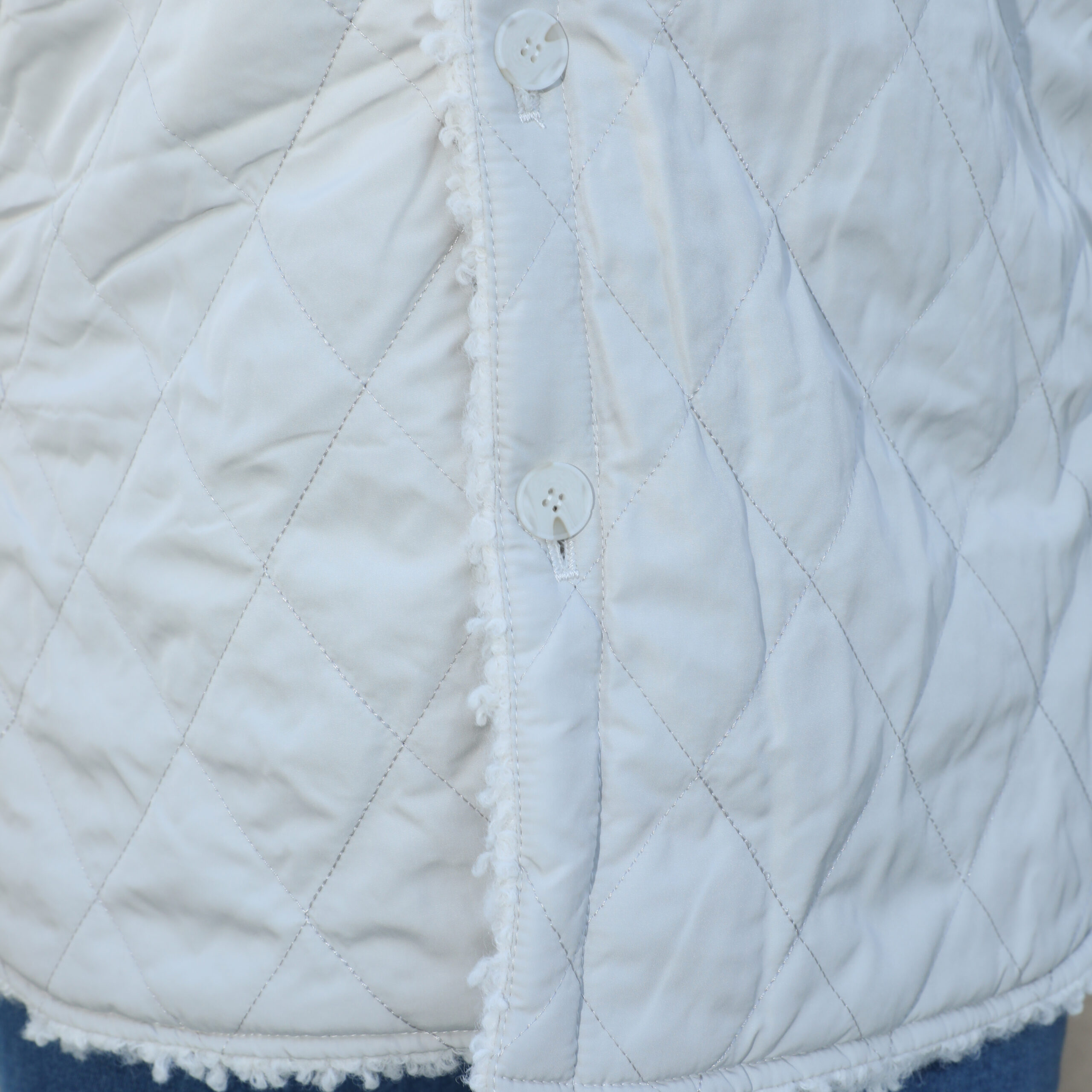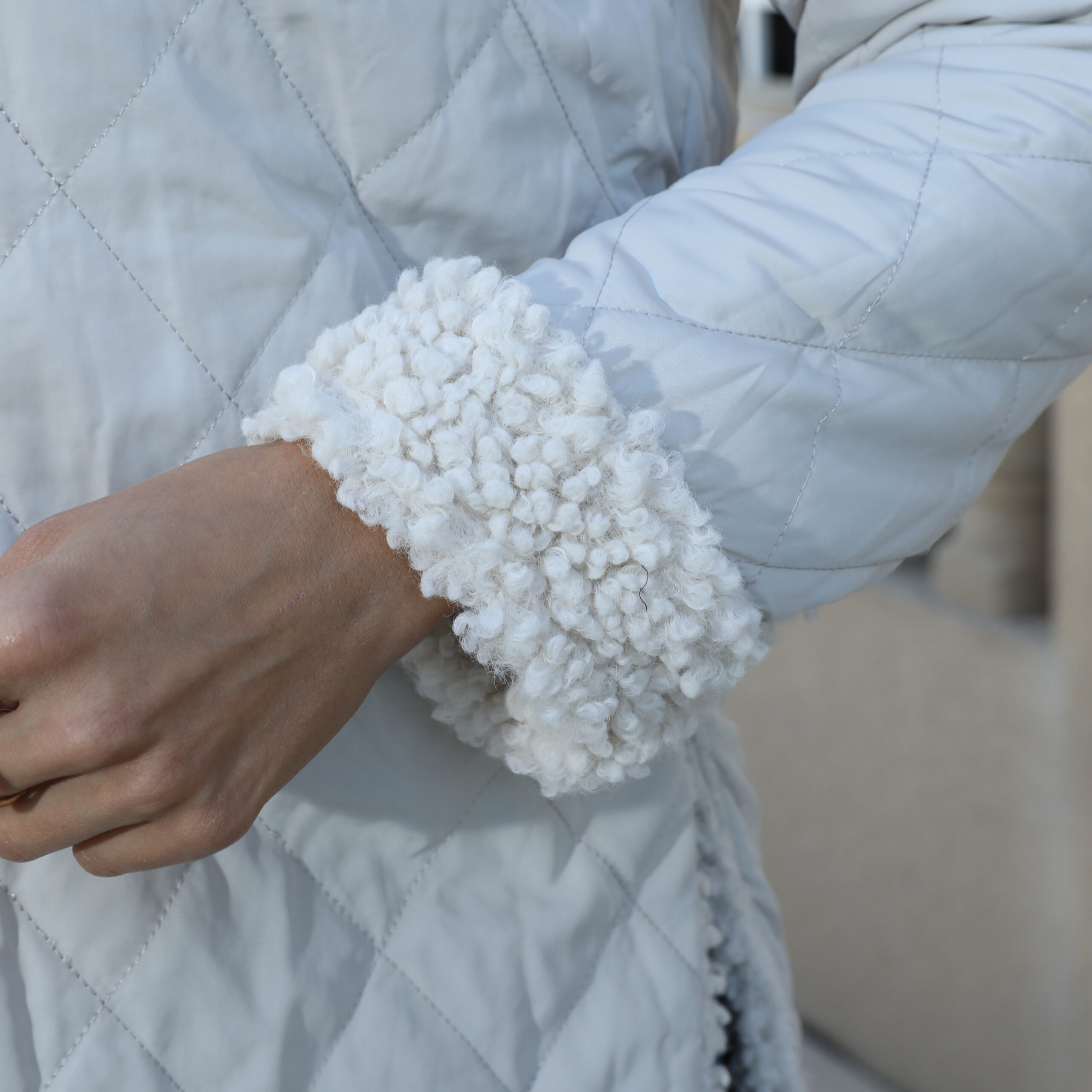 - Structured Collar: Adds polish to both the sherpa and quilted sides, framing the neck for a tailored look.